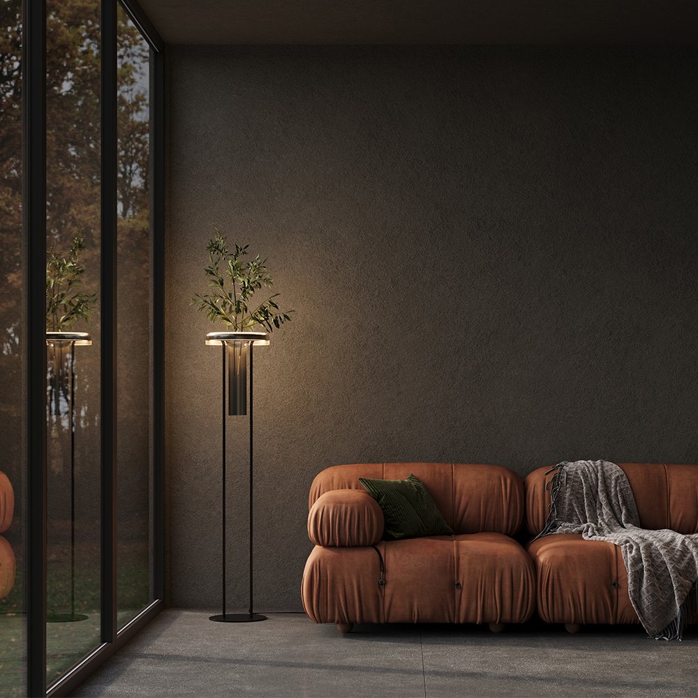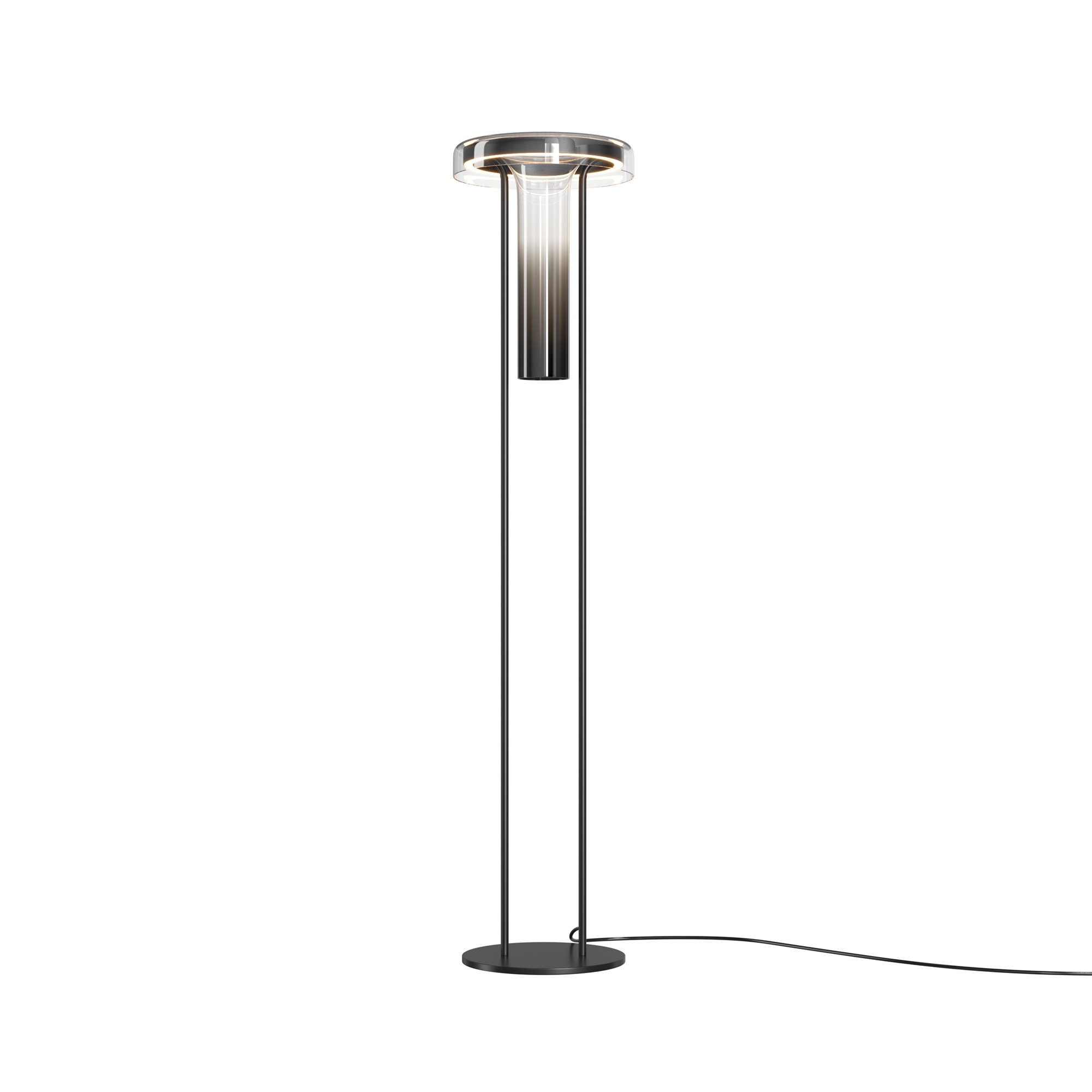 Уникальная в своем роде концепция торшера-вазы. Материал арматуры: металл; материал вазы: стекло. Два контрастных дизайна. Минималистичный дизайн в черном цвете и ваза с дымчатым зеркальным градиентом. Яркий дизайн в цвете латуни с вазой из прозрачного стекла в сочетании с серым мраморным основанием. Ваза съемная. Максимальная нагрузка для вазы не более 1,5 кг. Двунаправленный LED-источник света (3000К). Диммер на проводе позволяет регулировать яркость освещения. Идеален для зон отдыха.