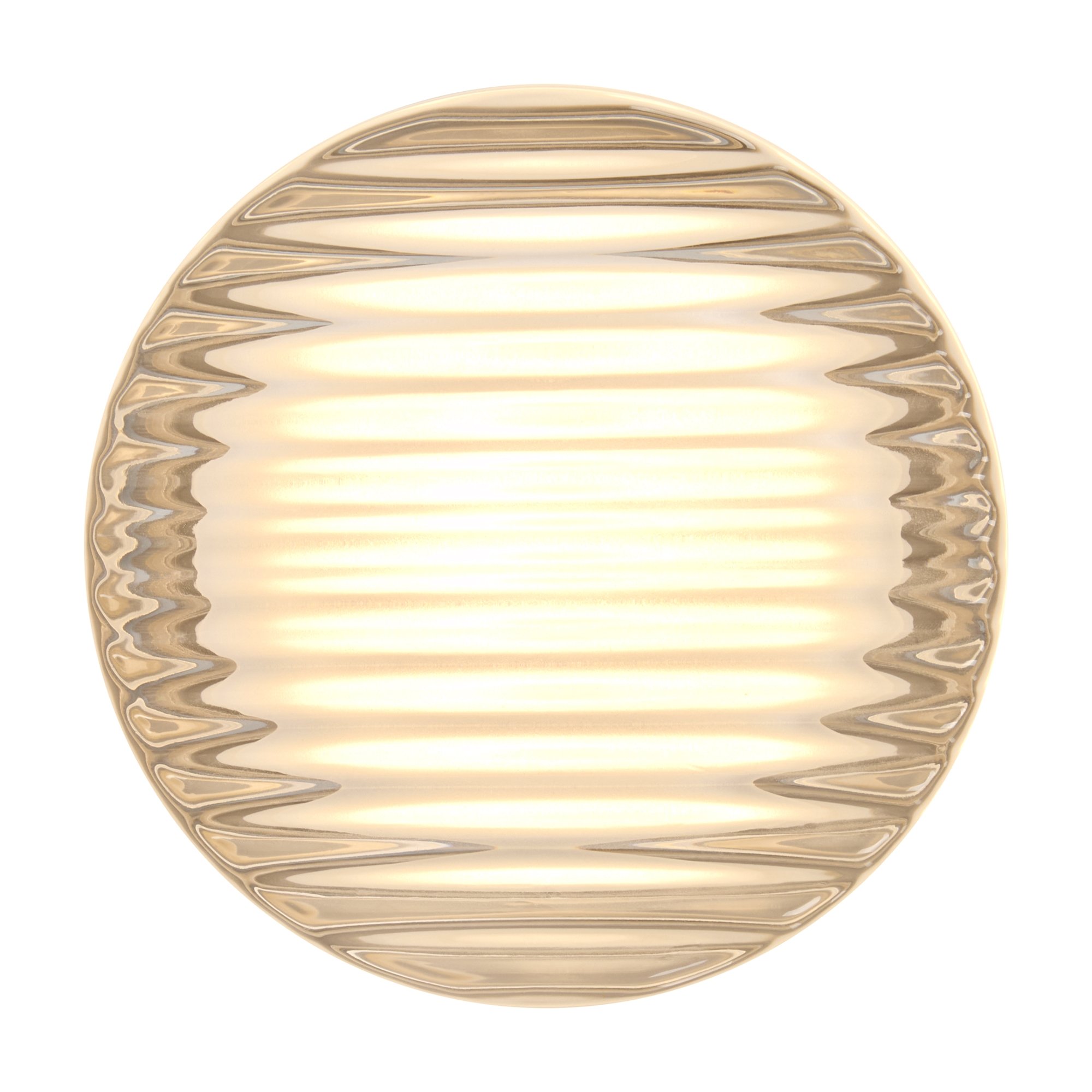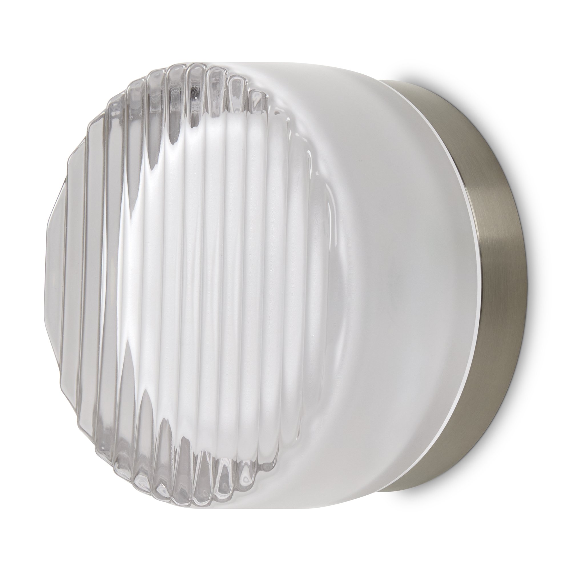 Металлическая арматура в цвете никель в трех рельефных основаниях. Плафоны, выполненные в приглушенно пшеничном и янтарном оттенках, доступны в двух размерах. LED источник света 2400К/2550К/3000K.