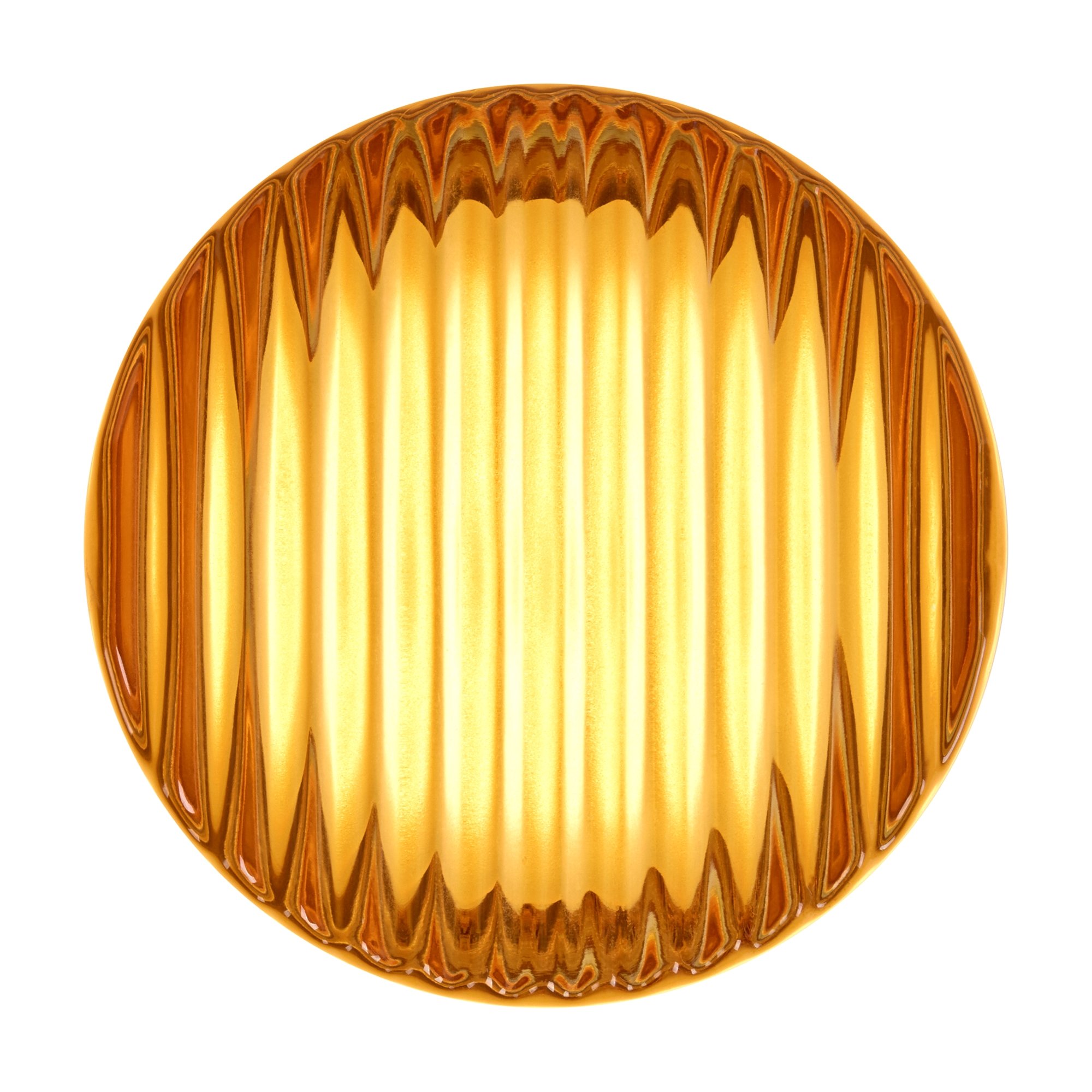 Металлическая арматура в цвете никель в трех рельефных основаниях. Плафоны, выполненные в приглушенно пшеничном и янтарном оттенках, доступны в двух размерах. LED источник света 2400К/2550К/3000K.
