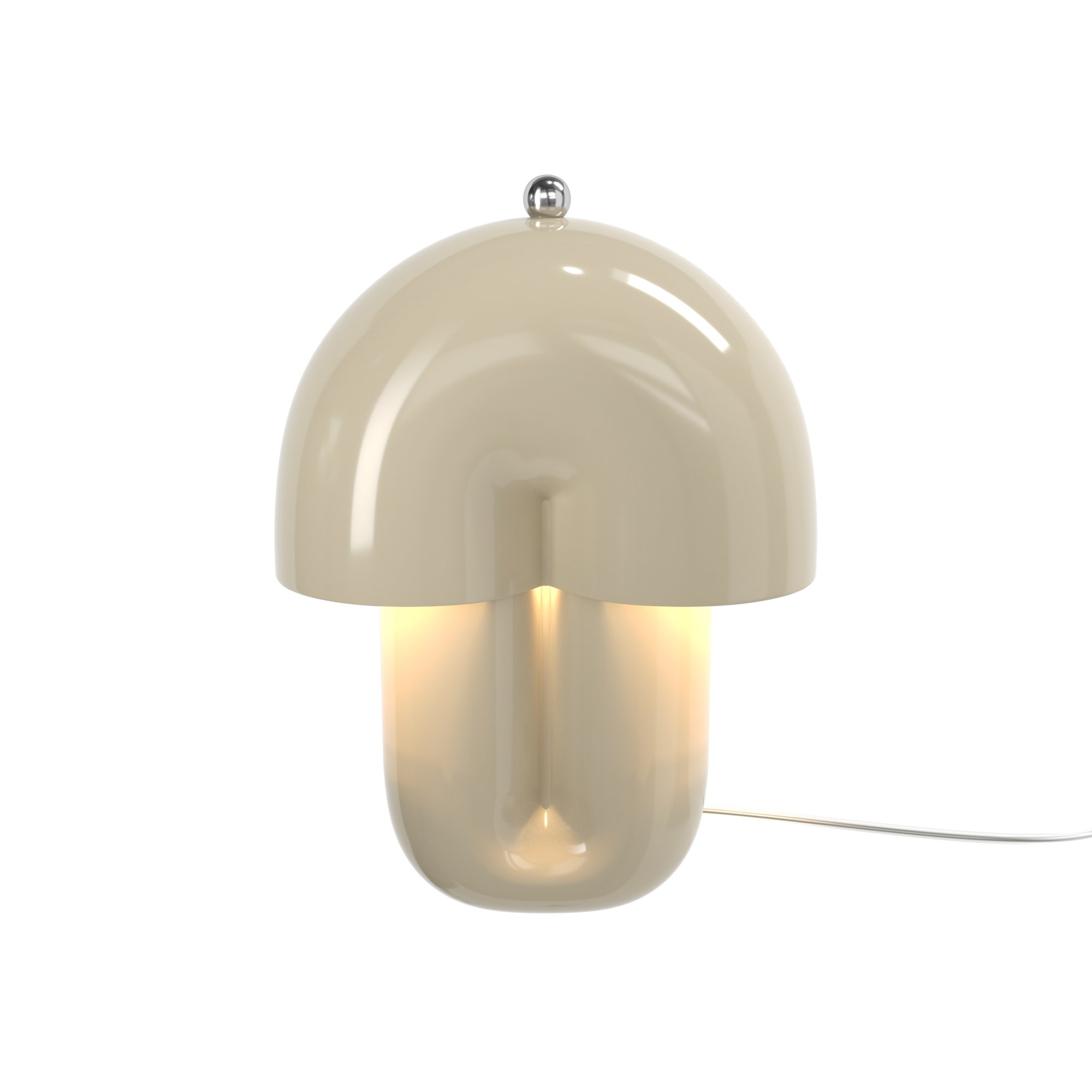 В основе дизайна — силуэт в форме «грибочка». Корпус светильника выполнен из натуральной керамики в трех цветах: шагреневый белый, глянцевые молочно-белый и нежный кашемир. LED-источник (3000К) с высокой световой отдачей (1400 лм) скрыт матовым акриловым рассеивателем и создает мягкий ореол под светильником. Сенсорный металлический шарик позволяет не только включать свет, но и регулировать его яркость. В комплекте предлагается два шара — в цвете сатинированной латуни или глянцевой платины.