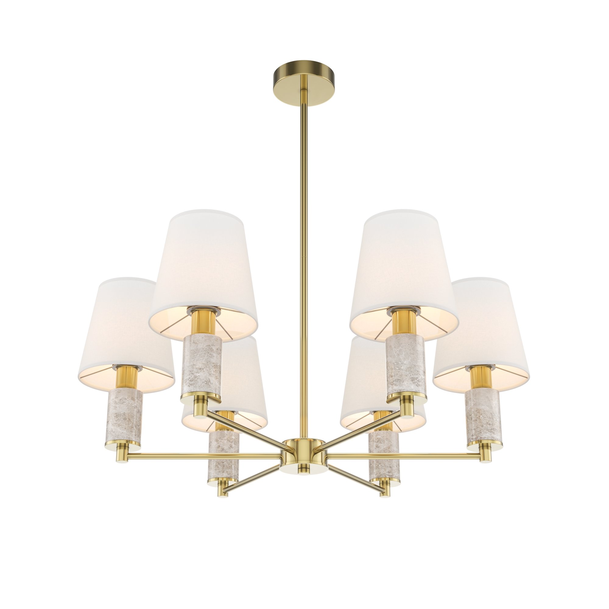 Серия включает подвесные (6 и 8 рожков), настенные, настольные и напольные светильники. Арматура: металл цвета сатинированной латуни с декоративными элементами из серого мрамора. Абажуры: текстиль. Сменный источник света с цоколем E14. Высота подвесных светильников регулируются сегментами штанги. Классический дизайн в современном исполнении. Предназначены для основного и акцентного освещения жилых помещений. Универсальное применение: гостиные, столовые, спальни, кабинеты, прихожие.