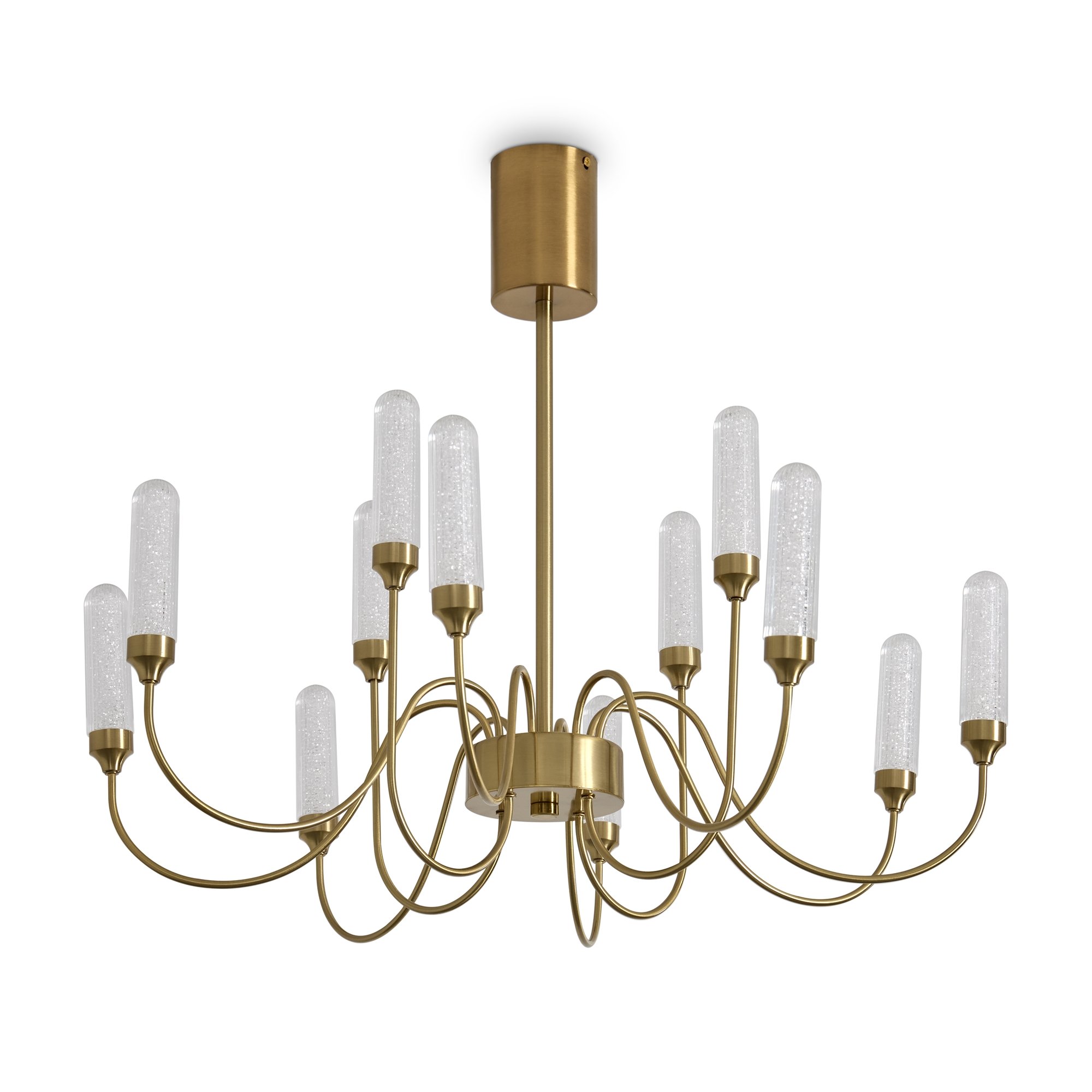 Арматура - металл в цвете латунь и никель. Основной акцент в дизайне люстр Alias сделан на акриловые плафоны, эффект пузырьков. Встроенный LED модуль 2700K. 2 дизайна подвесных светильников.