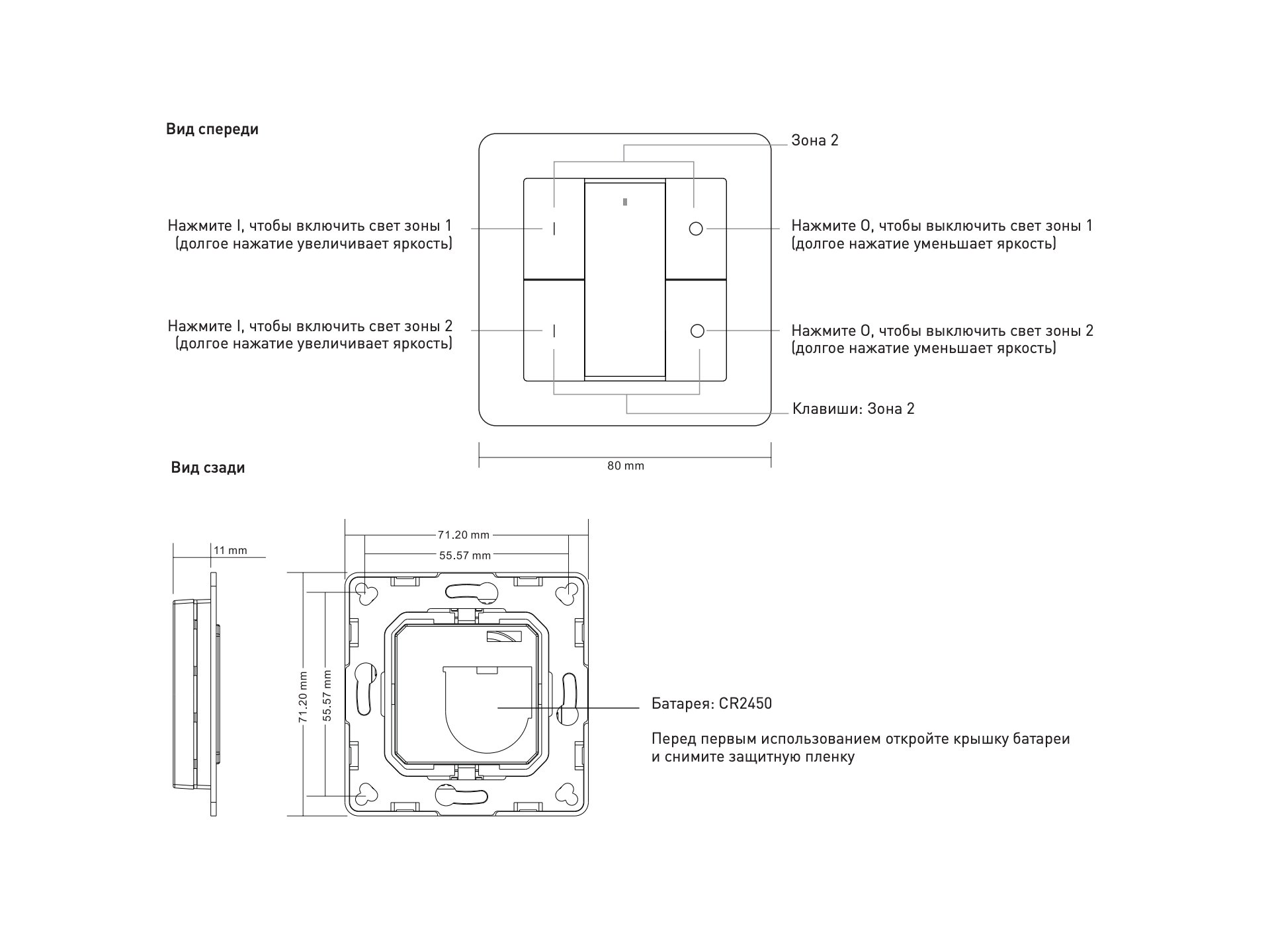 ES-B-W-K4/Z2 - настенная радио панель EASYBUS на 2 зоны, 3В батарейка, размеры 80x80x13.6мм.