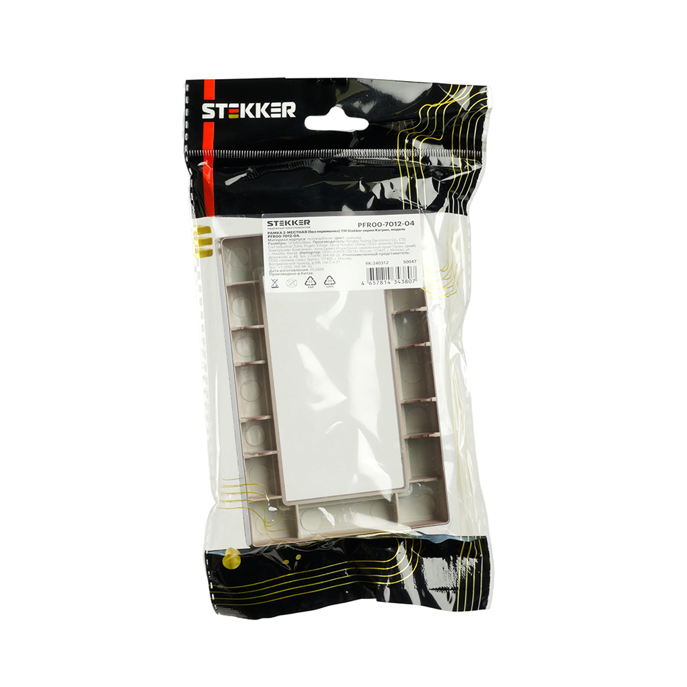 Рамка 2-местная (без перемычки), пластик, STEKKER, PFR00-7012-04, серия Катрин, шоколад