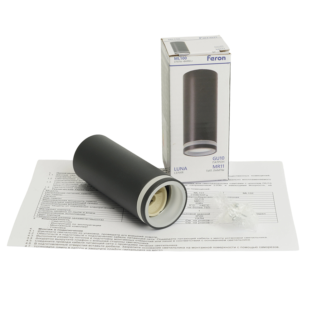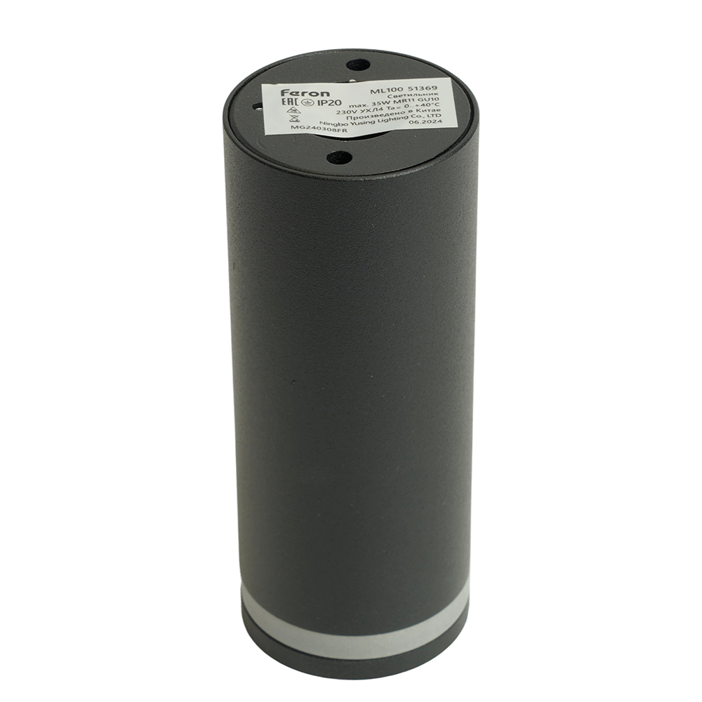Светильник накладной под лампу, спот (-) FERON ML100, GU10 35W, 230V, IP20, цвет черный, корпус алюминий, акрил, 40*40*100