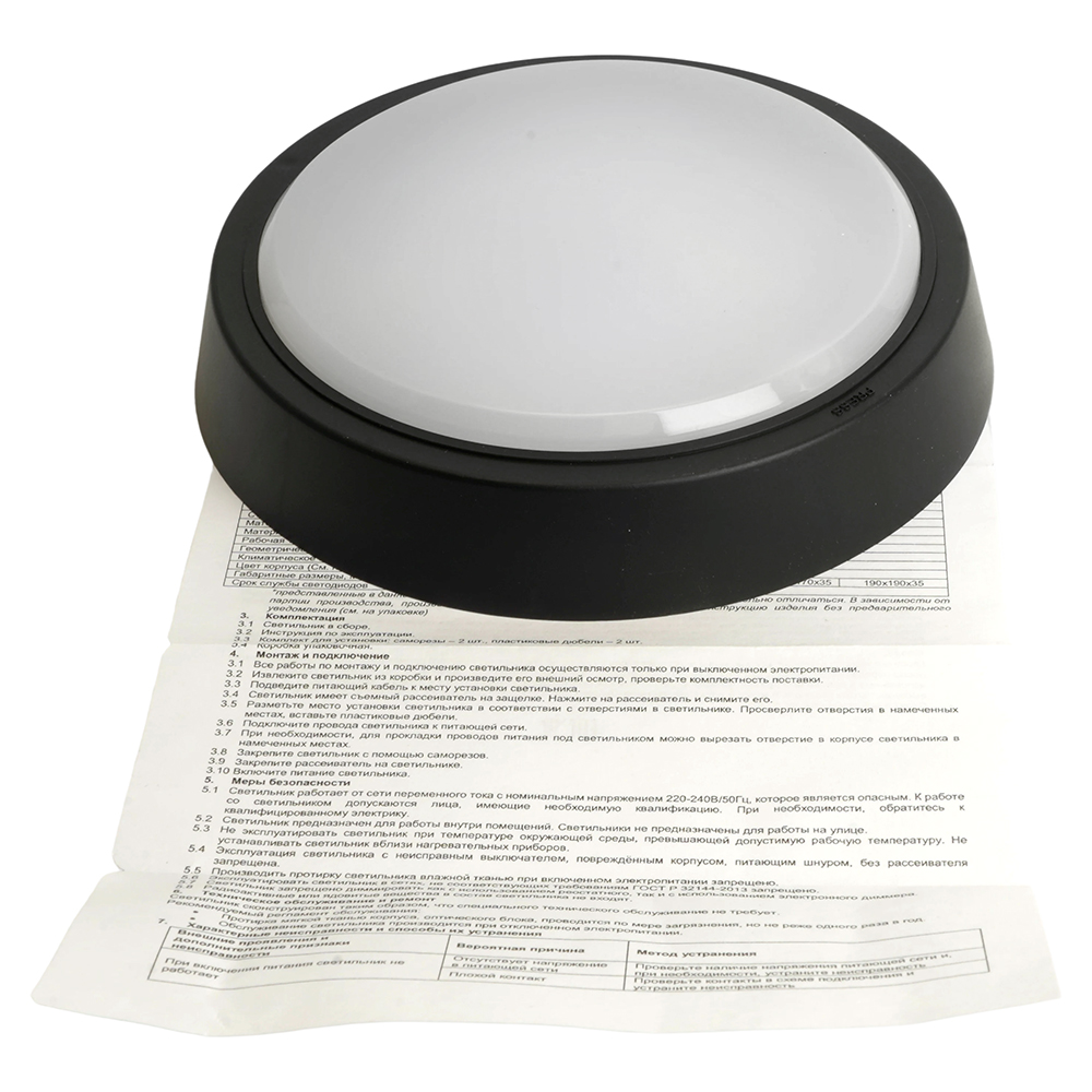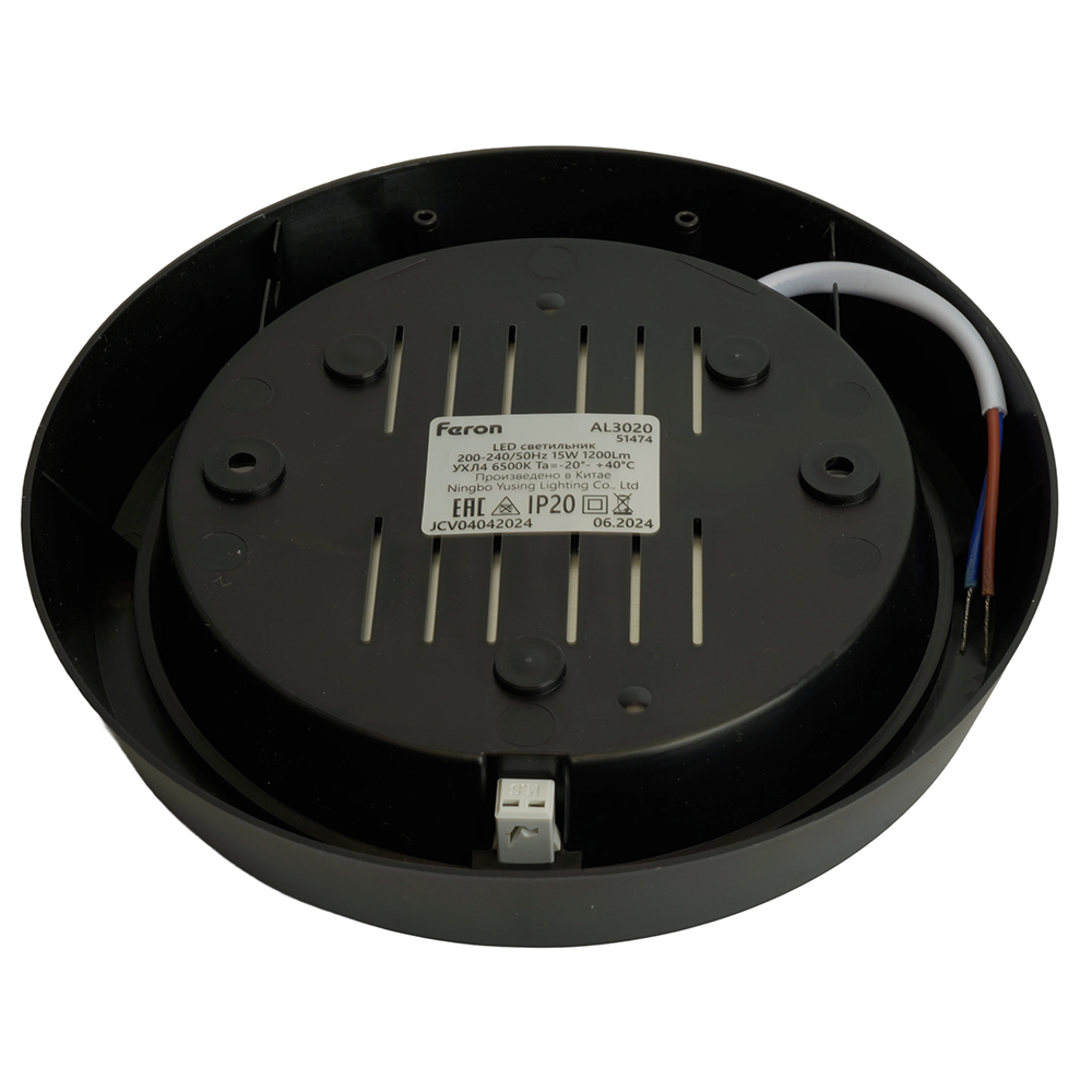 Светильник накладной светодиодный, круг (ДПБ) FERON AL3020, 15W, 6500К (дневной), 200-240V, 1200Lm, IP20, угол рассеивания 120°, цвет черный, корпус пластик, рассеиватель пластик, 155*155*35
