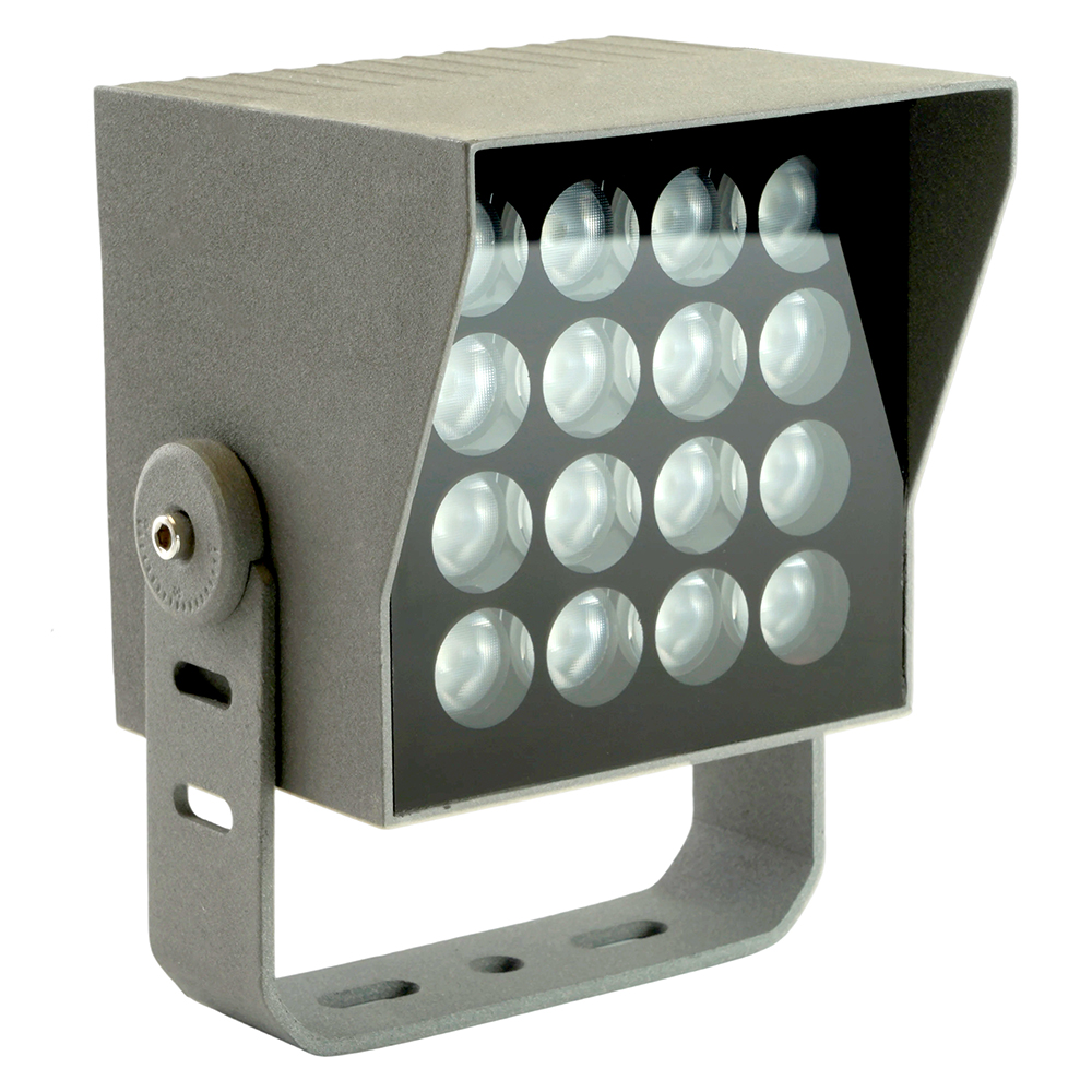 Прожектор ландшафтно-архитектурный светодиодный, на кронштейн (ДДУ) FERON LL-897, 25W, 6400К (холодный белый), 220-240V/50Гц, 2000Lm, IP66, угол рассеивания 20°, 16LED*3535SMD, класс защиты 1, раб.t -45°C - +40°C, цвет металлик, корпус алюминий, 115*115*190мм,