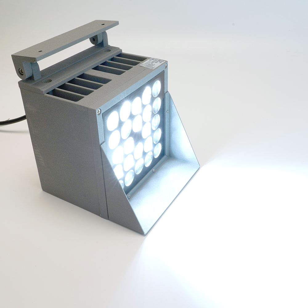 Прожектор ландшафтно-архитектурный светодиодный, на кронштейн (ДДУ) FERON LL-898, 49W, 6400К (холодный белый), 220-240V/50Гц, 3920Lm, IP66, угол рассеивания 20°, 24LED*3535SMD, класс защиты 1, раб.t -45°C - +40°C, цвет металлик, корпус алюминий, 150*150*180мм,