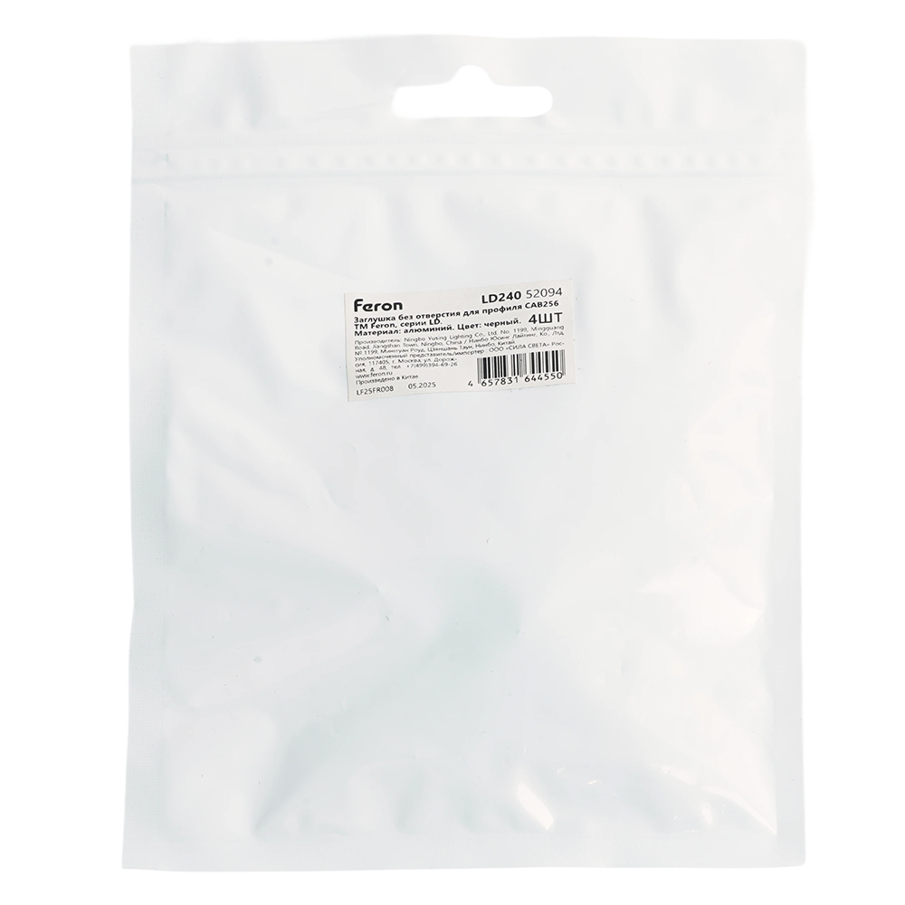 Заглушка для профиля FERON LD240 «без отверстия», цвет черный, в комплекте 4 шт, 39*2*39мм