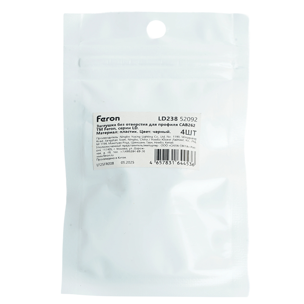 Заглушка для профиля FERON LD238 «без отверстия», цвет черный, в комплекте 4 шт, 14*5*9мм
